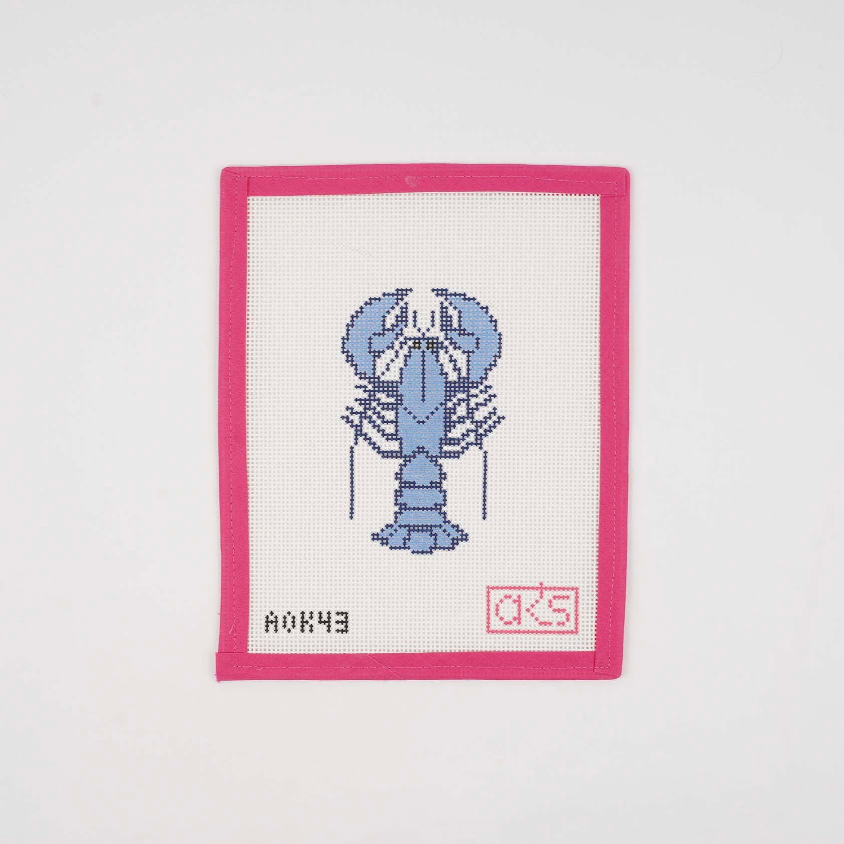 This iconic blue lobster on 13 mesh is a perfect canvas for a beginning stitcher. Design is 4.7 inches x 2.8 inches on 13 mesh. AOK 43