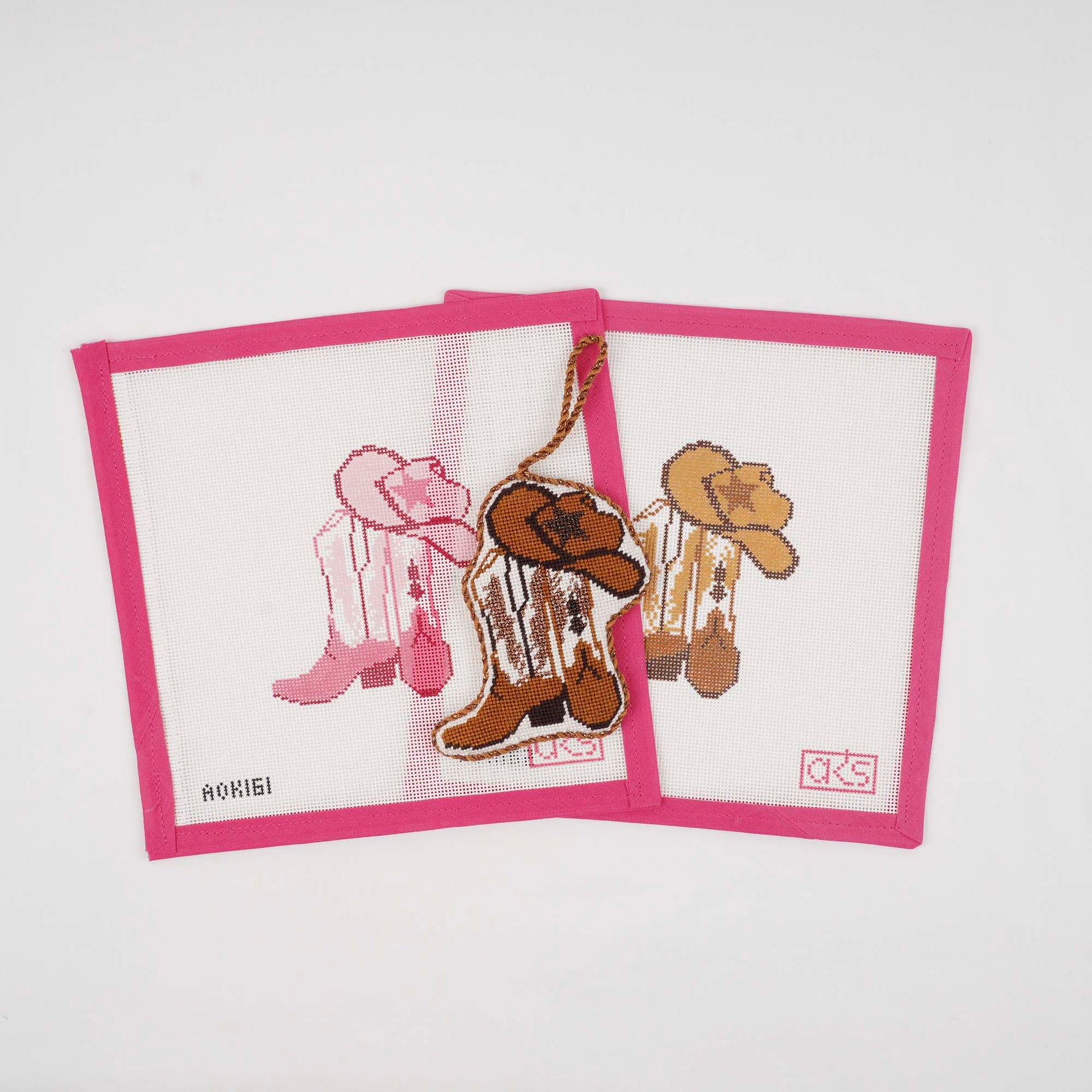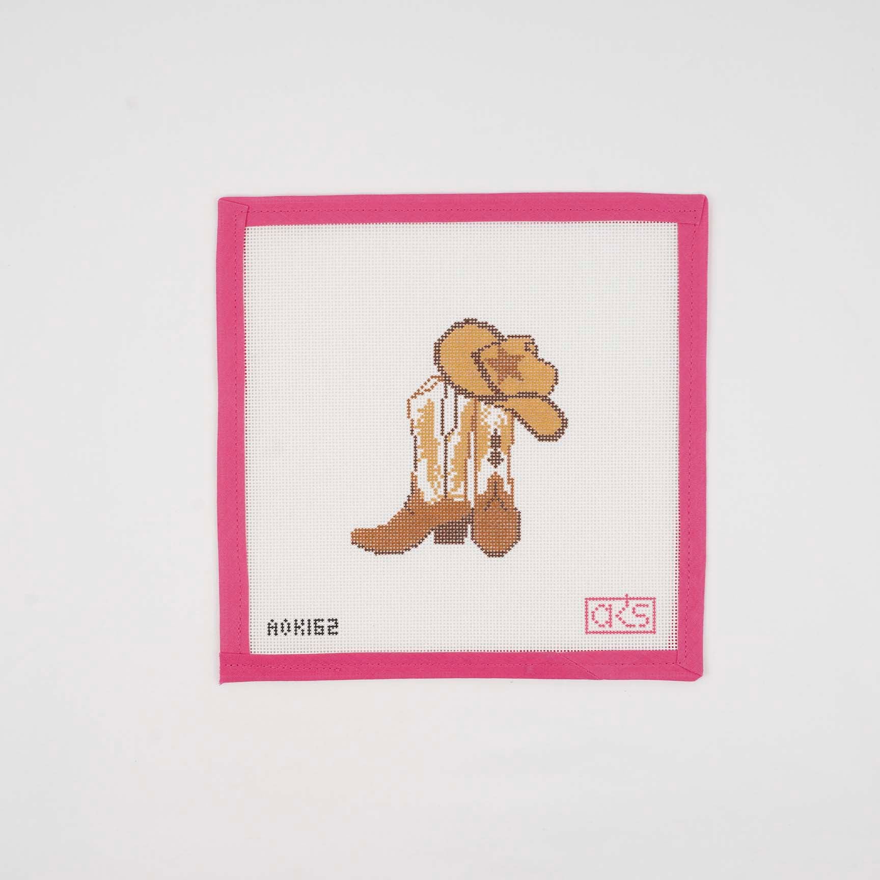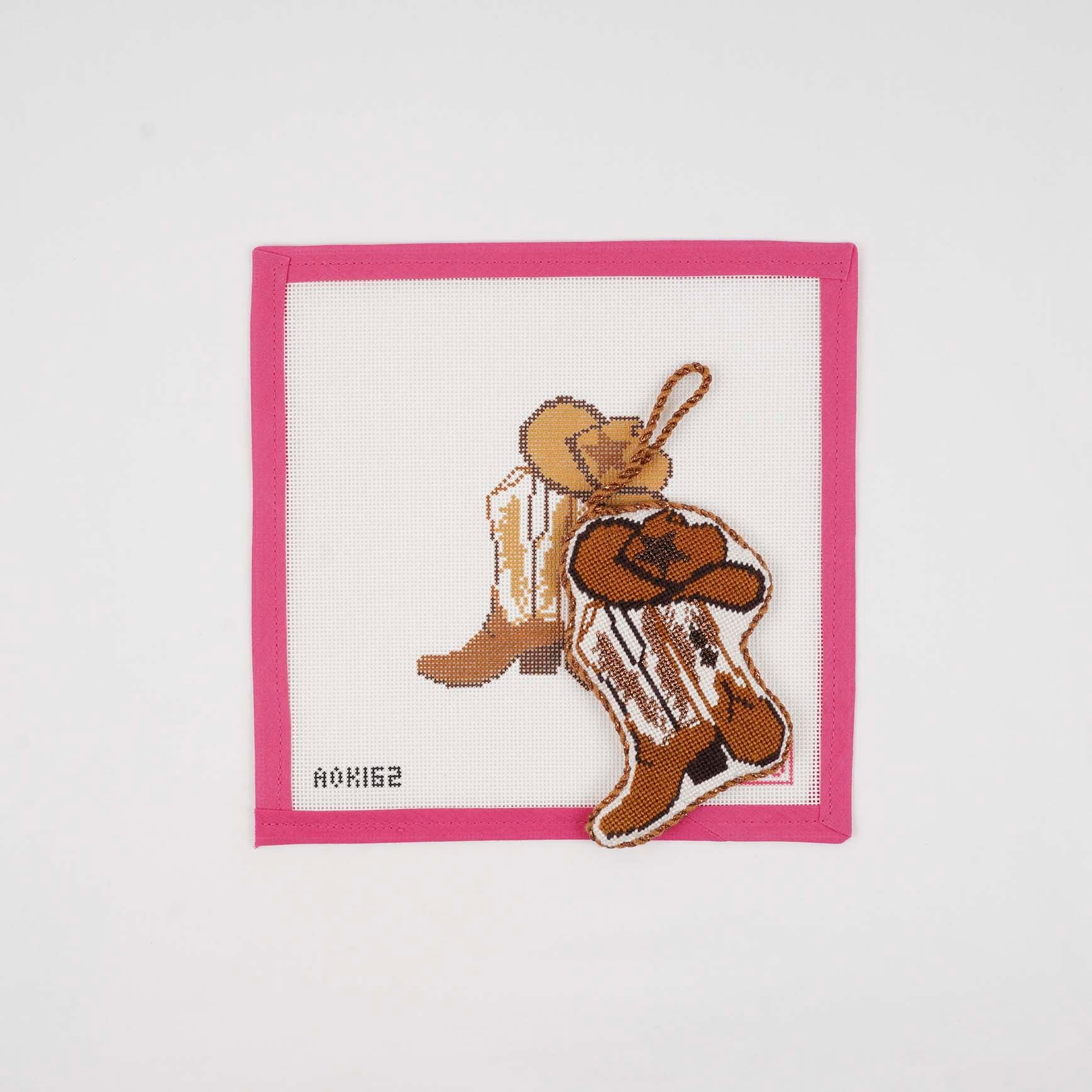 Yee-haw! Grab your boots and your cowboy hat and get ready for some fun! This 4" x 3.6" design on 18 mesh can be finished as an ornament, a door hanger, or whatever might suit your fancy! AOK 162