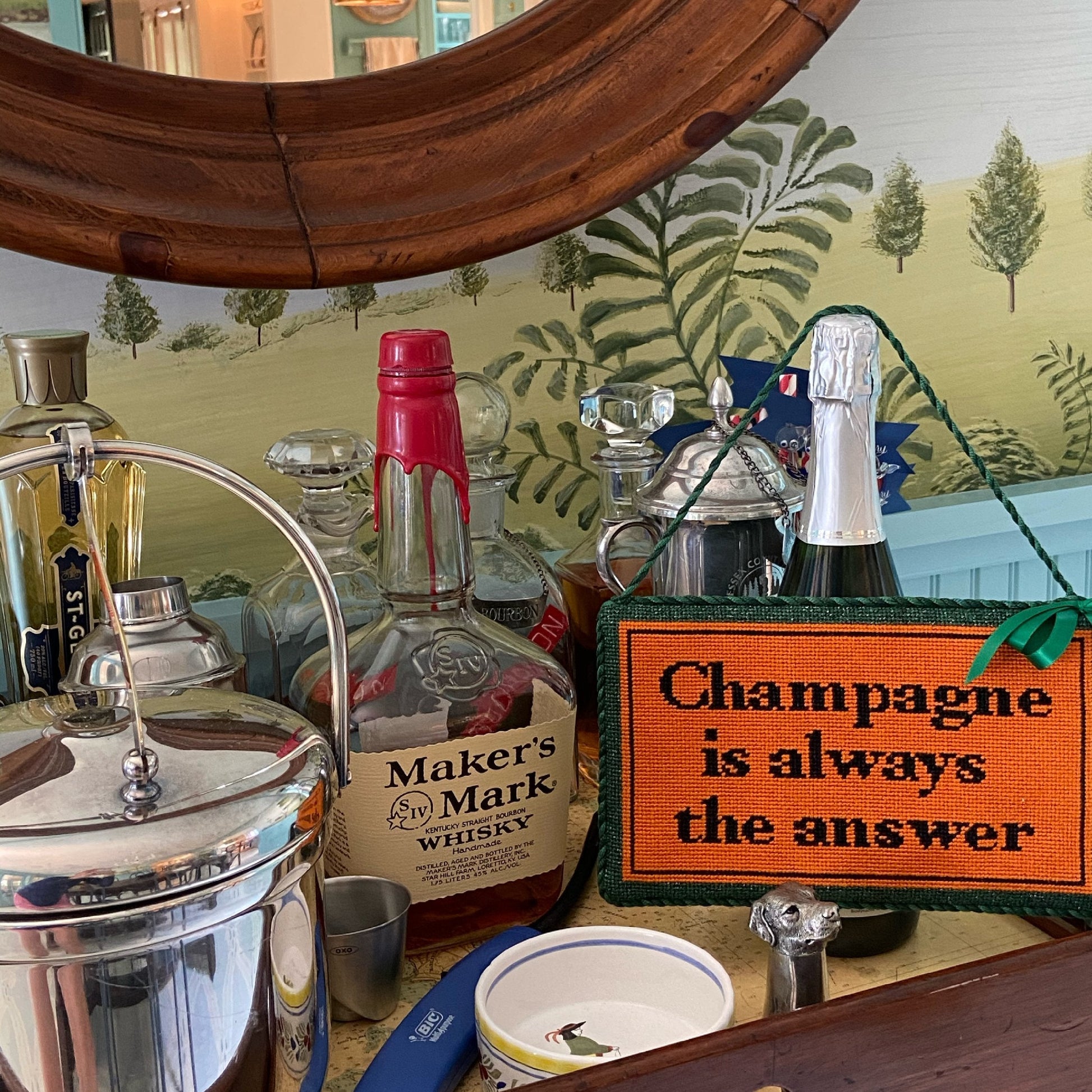 Champagne is always the answer — we all know this to be true. This canvas would be great finished as a bar sign or a small pillow and would be appropriate for a beginner or advanced beginner. (This design is also available on 18 mesh.) AOK 44