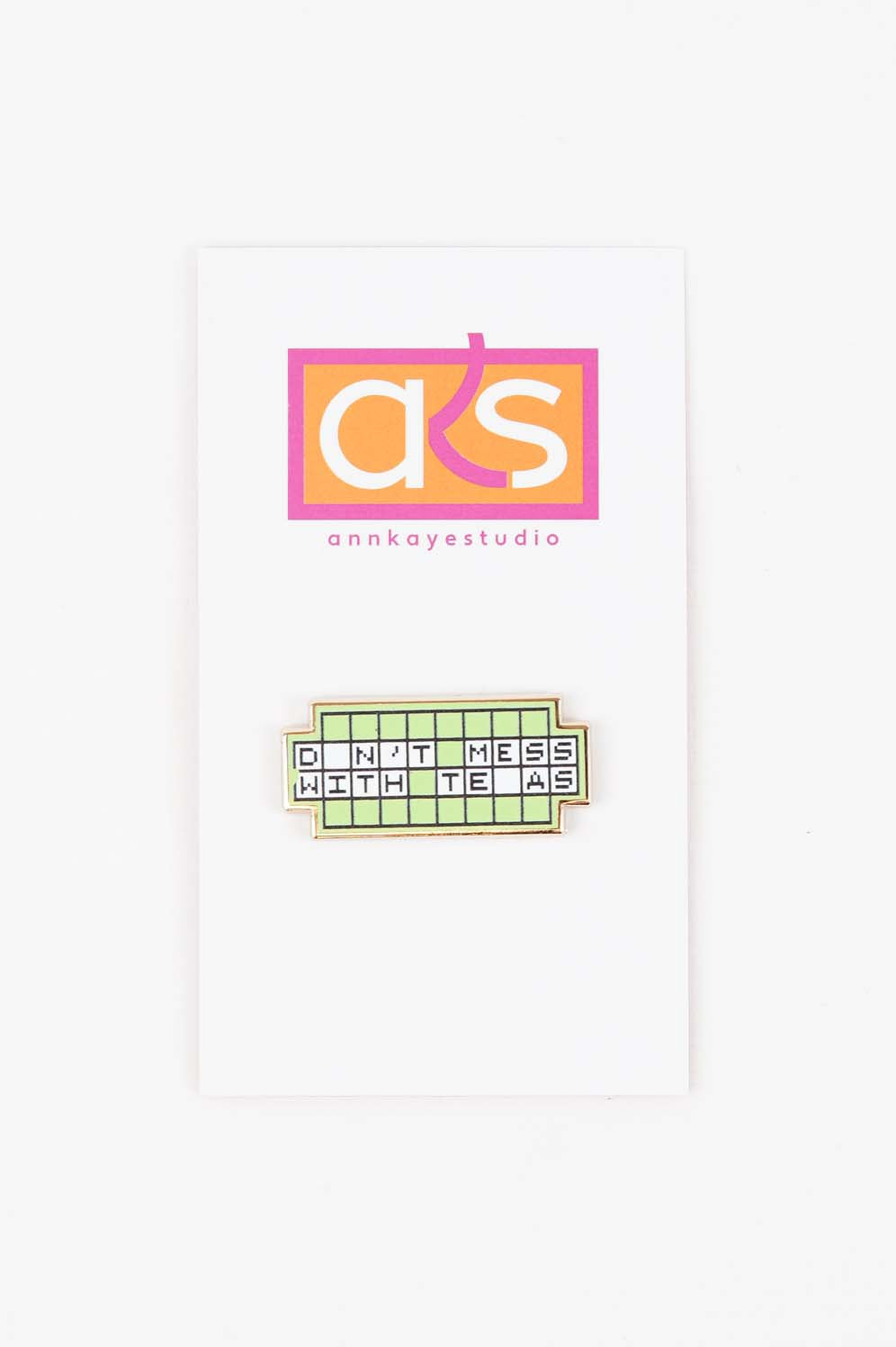 Our Don't Mess with Texas Wheel of Fortune canvas is now available as a needleminder! The enamel needleminder attaches to your canvas magnetically, keeping your needles close at hand while you stitch. NM 17