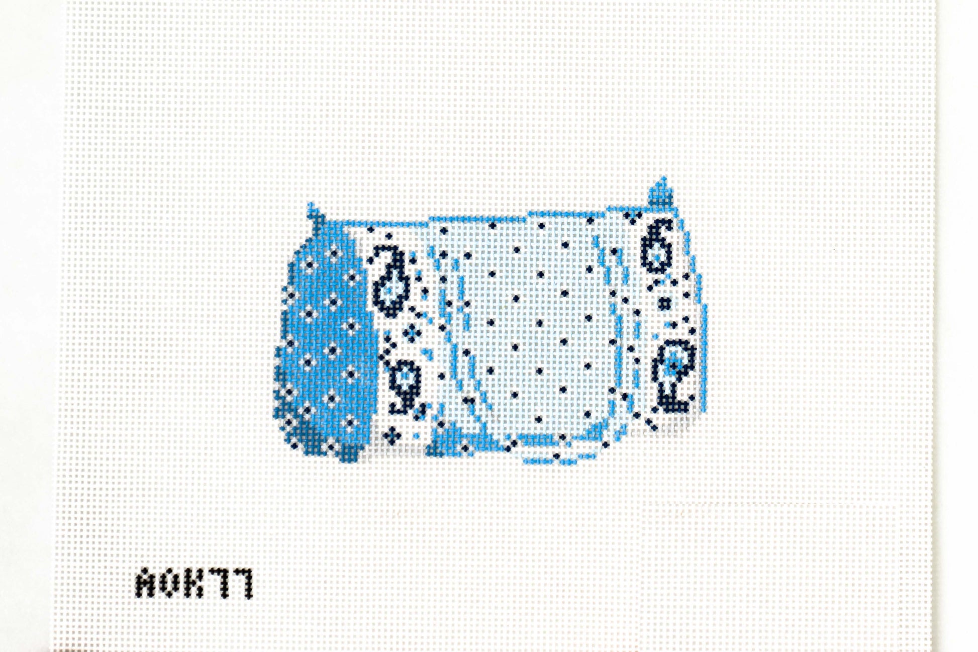 Anyone remember these from the 80’s and 90’s? Pierre Deux, Soleado … Some of us wish they were still available, so that’s why I designed this bag canvas — the real thing was crucially important to a particular subset of American culture. I think you might say IYKYK. This design is 3.8” x 2.5” and is on an approximately 8” x 8” canvas, 18 mesh. AOK 77