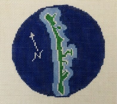 Do you love to spend time on Gasparilla Island? This 4” round ornament or coaster on 18 mesh is perfect for you! Buy one, buy a set, or mix and match with other fun destination canvases. AOK 36