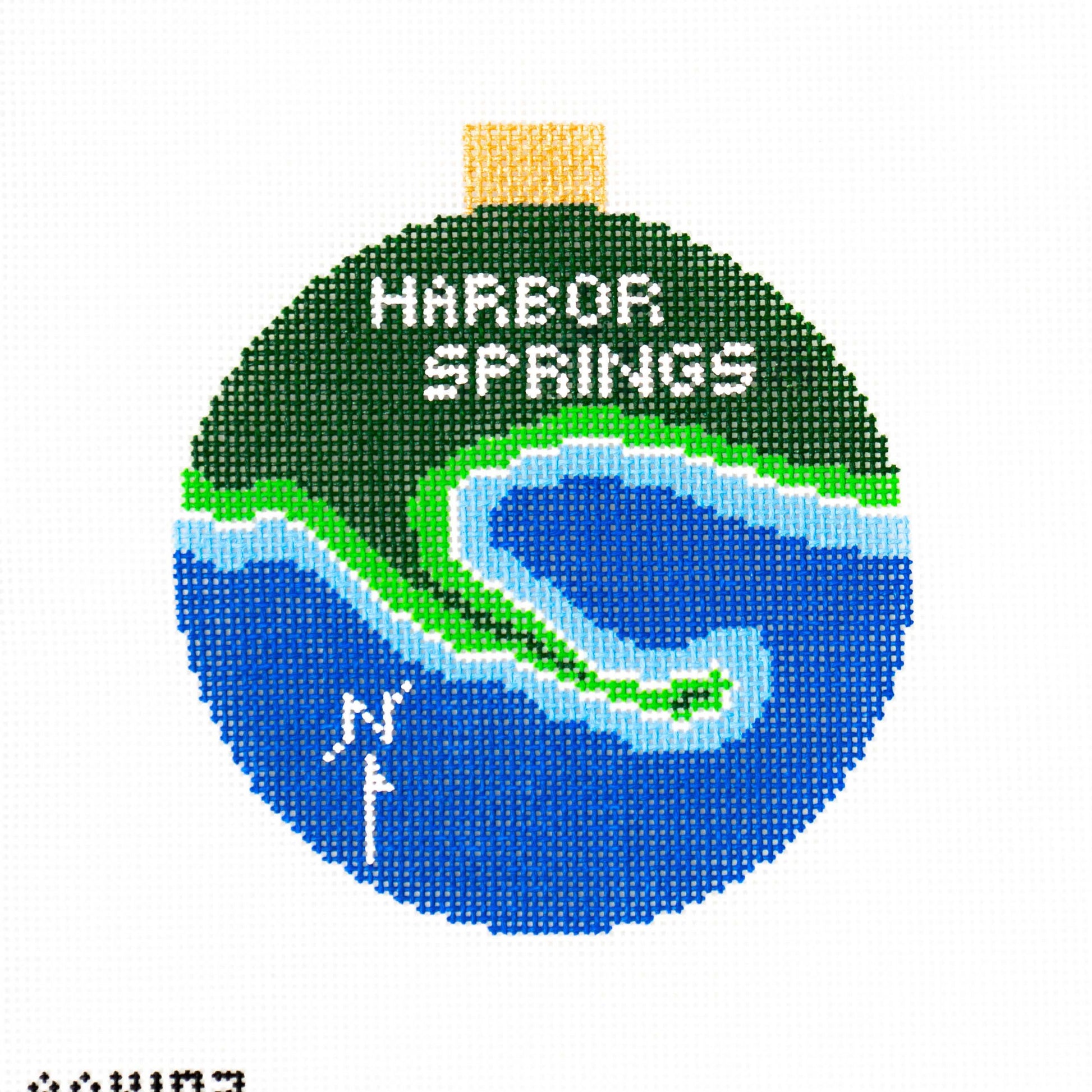 Capture your memories of Michigan with this ornament of Harbor Springs and Harbor Point. Can be finished as a coaster as well. 4” round on 18 mesh. AOK 103