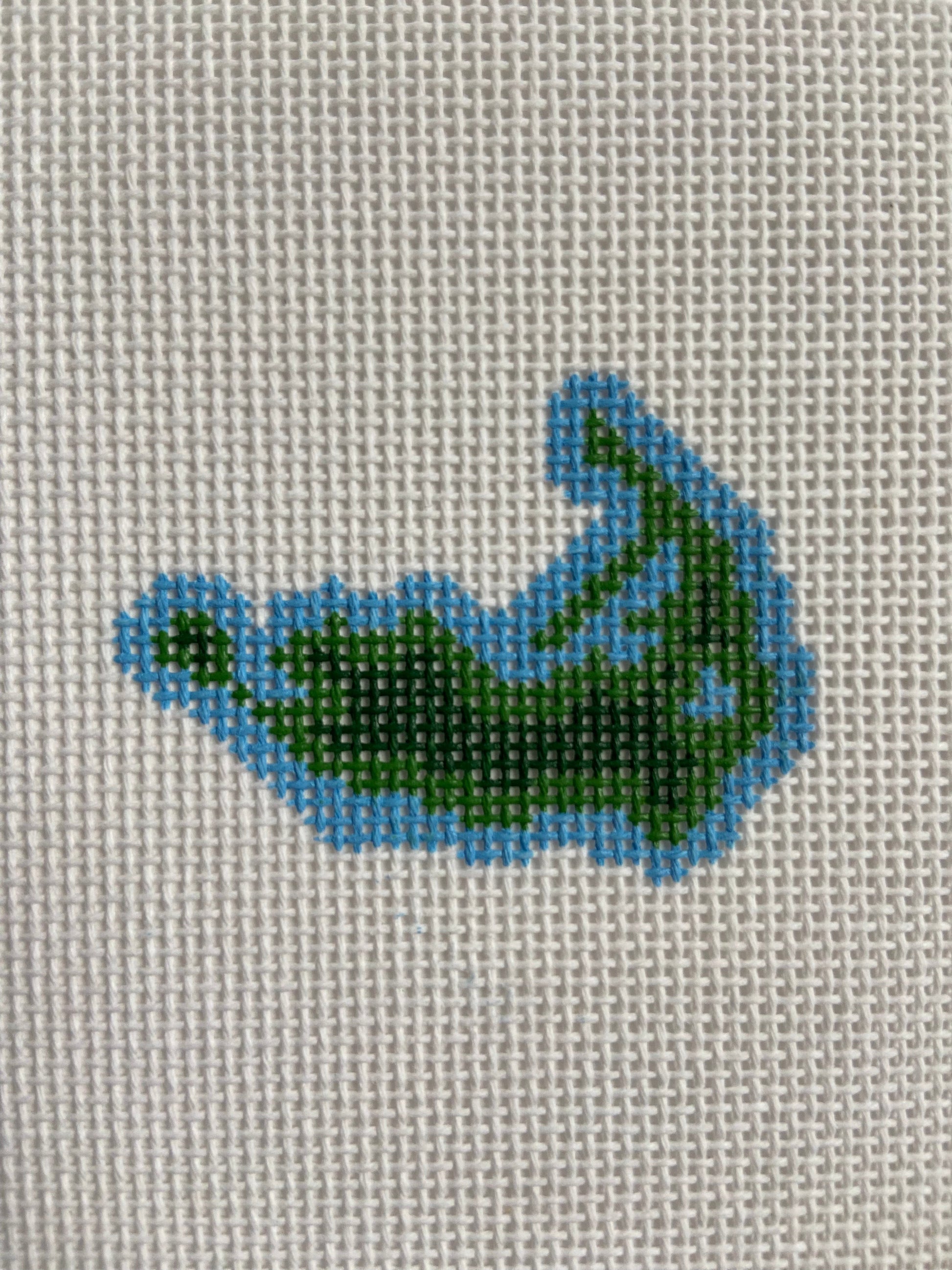 This cute Mini Nantucket is a 2x2" square on 18 mesh canvas that fits perfectly in the Evergreen Needlepoint Can Cozy or may be used as a key chain or ornament. AOK 122