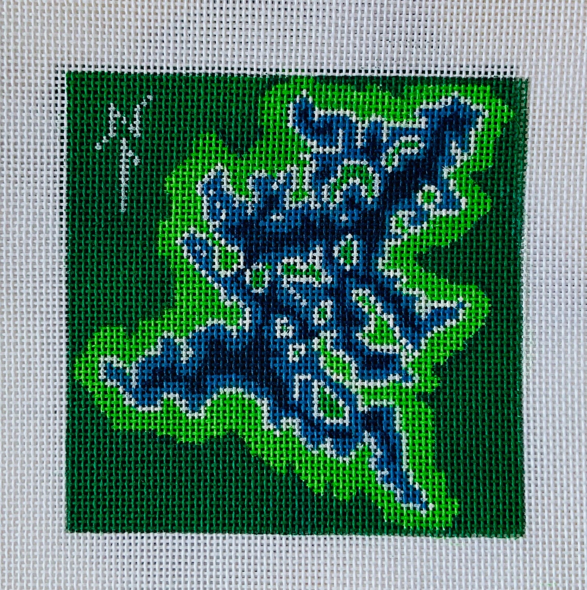 Our Squam Lake coaster is a 4.25” square on 18 mesh. Buy one, buy a set, or mix and match with other fun destination canvases. AOK 29