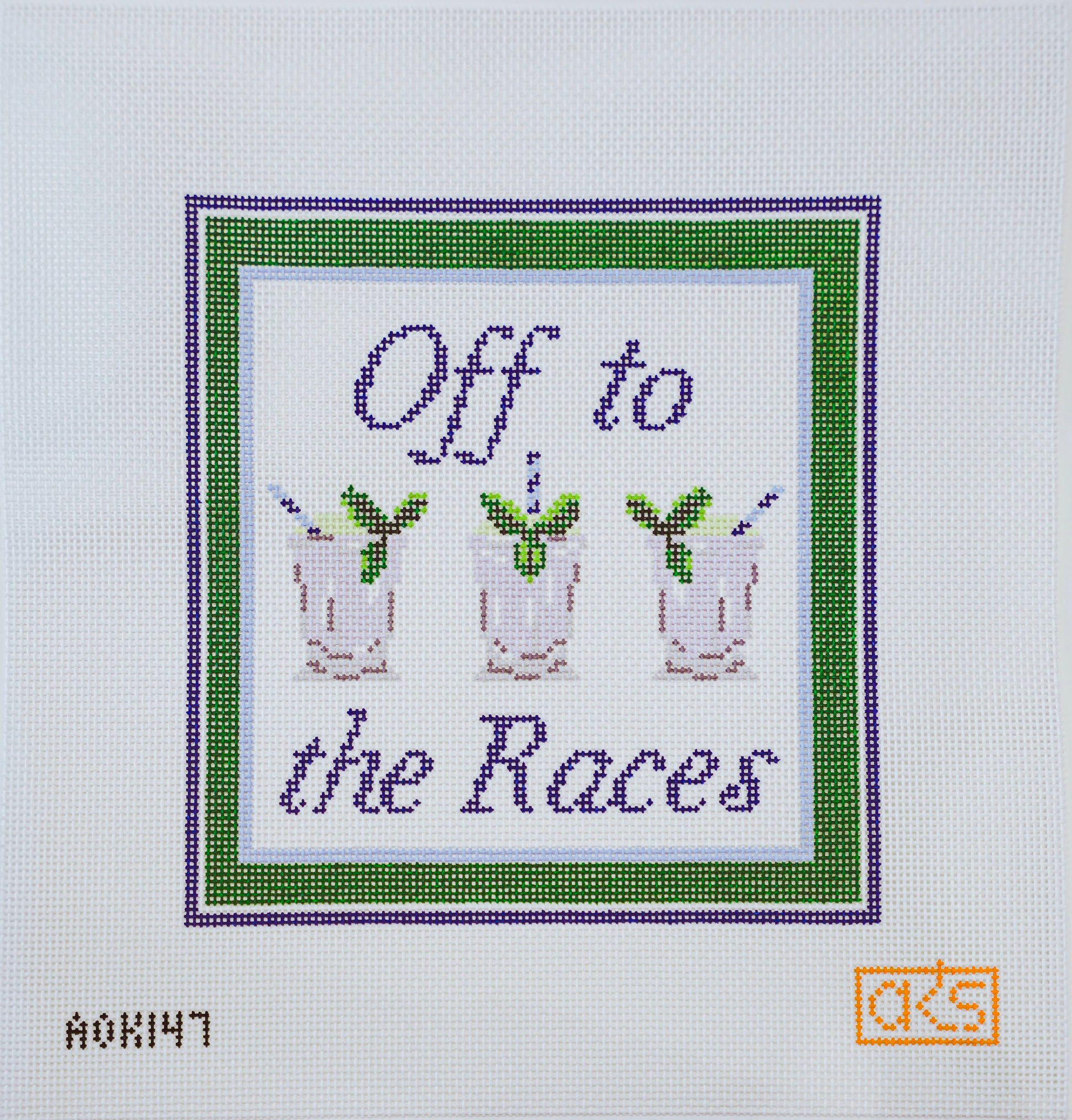 Mix yourself a mint julep, don your best hat, and get ready to head off to the races! This 8x8" design on 13 mesh can be finished as a sign or to fit into an 8x8" acrylic tray. AOK 147