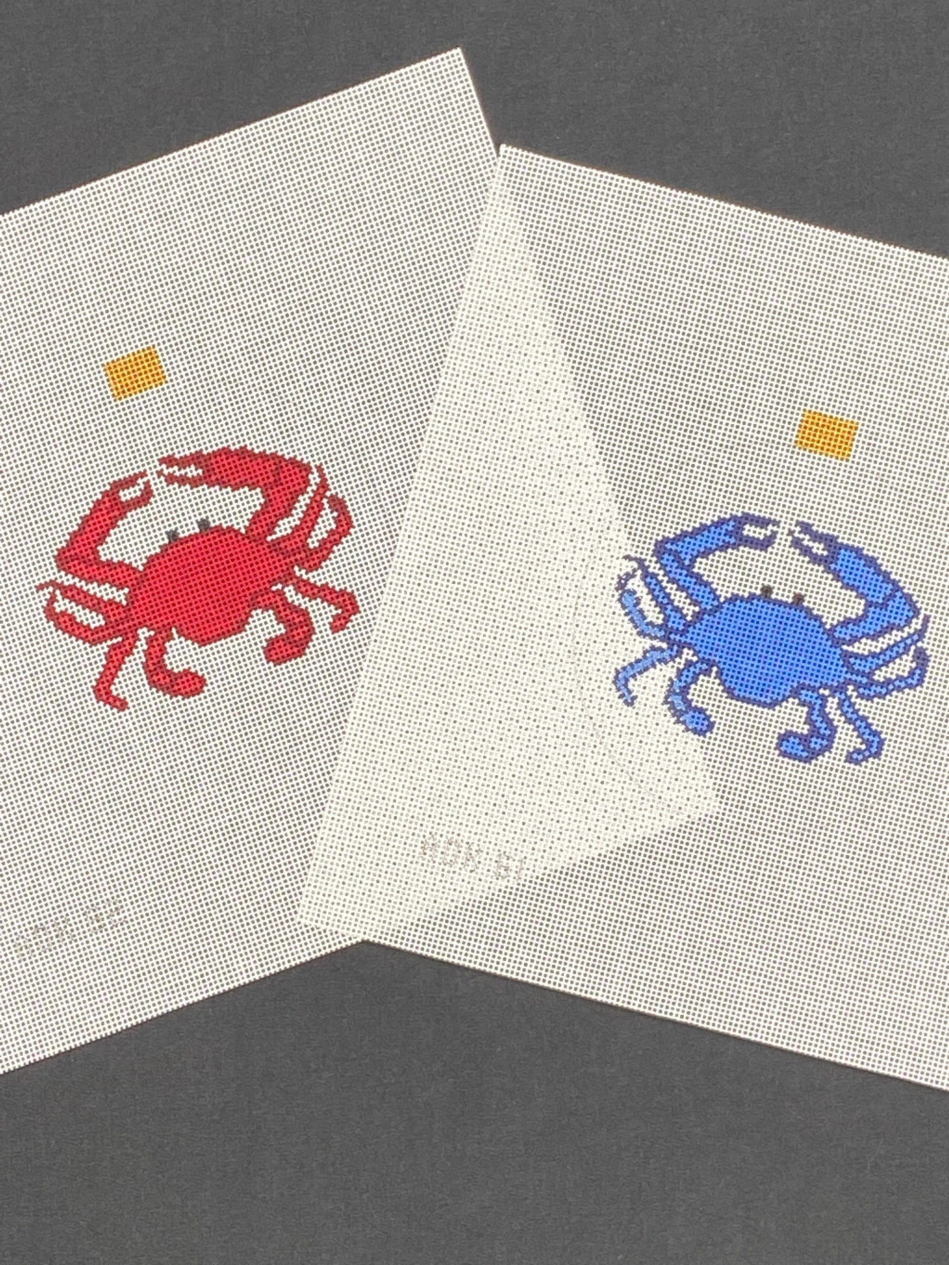 This red crab on 18 mesh can be finished as a round ornament with a gold topper or stitched into a 4” circle or square for a coaster. This is the perfect companion to our blue crab ornament. AOK 62