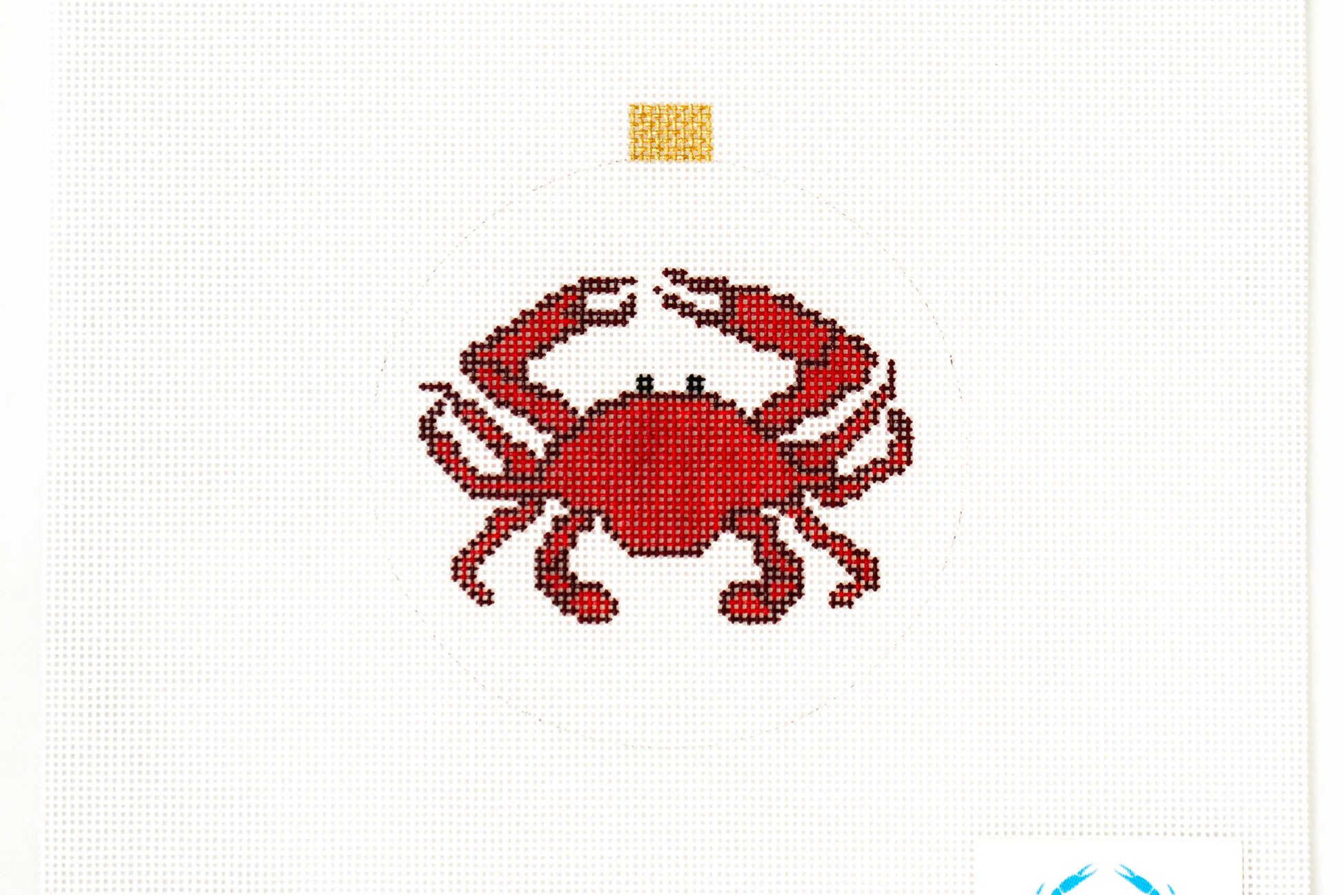 This red crab on 18 mesh can be finished as a round ornament with a gold topper or stitched into a 4” circle or square for a coaster. This is the perfect companion to our blue crab ornament. AOK 62