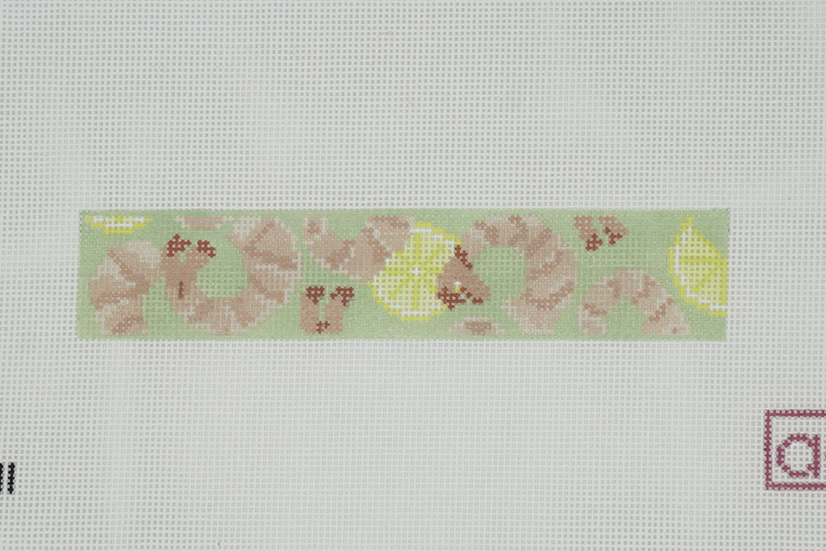 Love shrimp cocktail? Dress your keychain for summer with this fresh design of shrimp and lemons on a mint green background. Design is 6.5 x 1.5” on 18 mesh. AOK 181