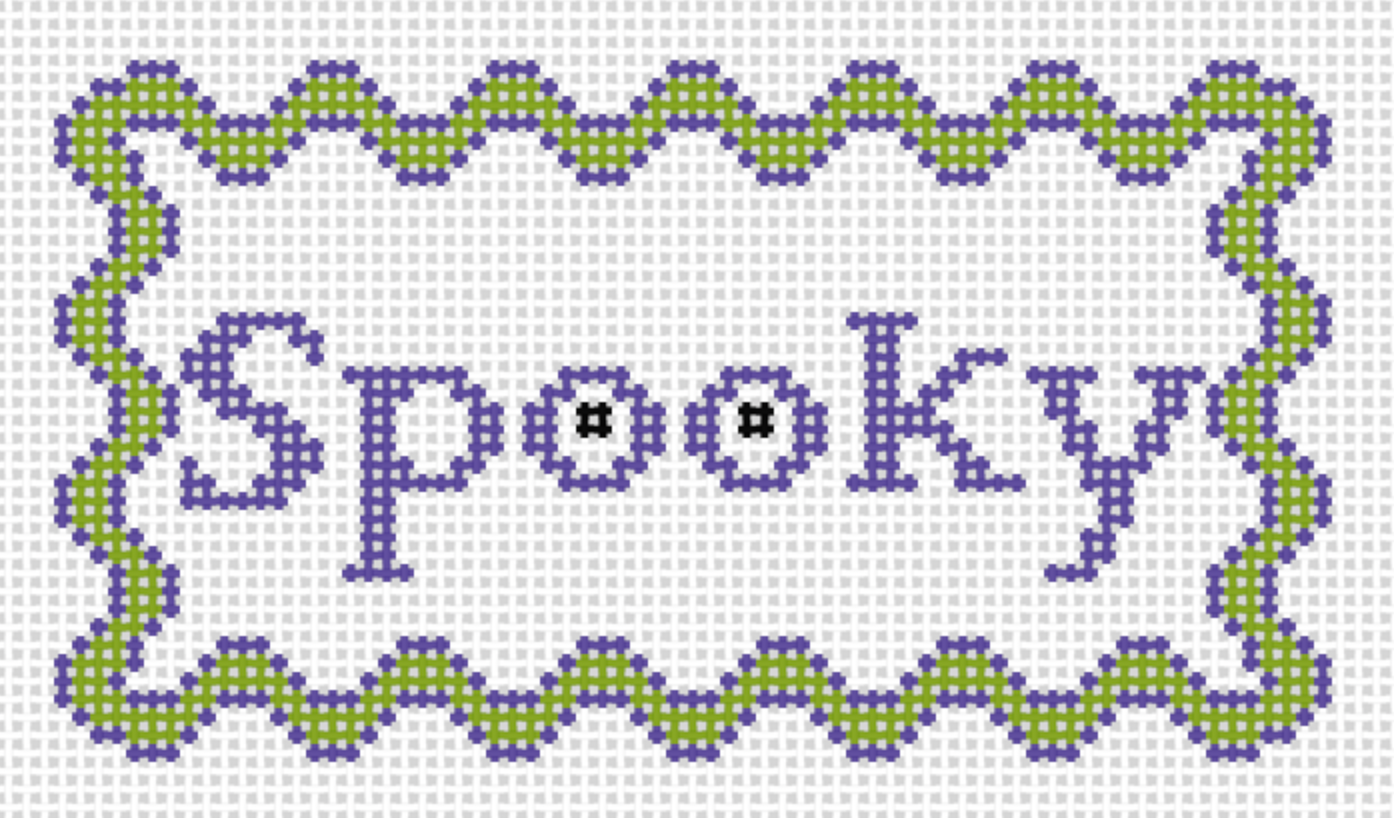 Get everyone into the Halloween spirit with this ric rac sign on 13 mesh. This design measures 2x4" on 18 mesh. It would be a quick and simple stitch perfect for a beginner stitch. And, don't forget, there are glow in the dark threads available that would be perfect for this! AOK 289