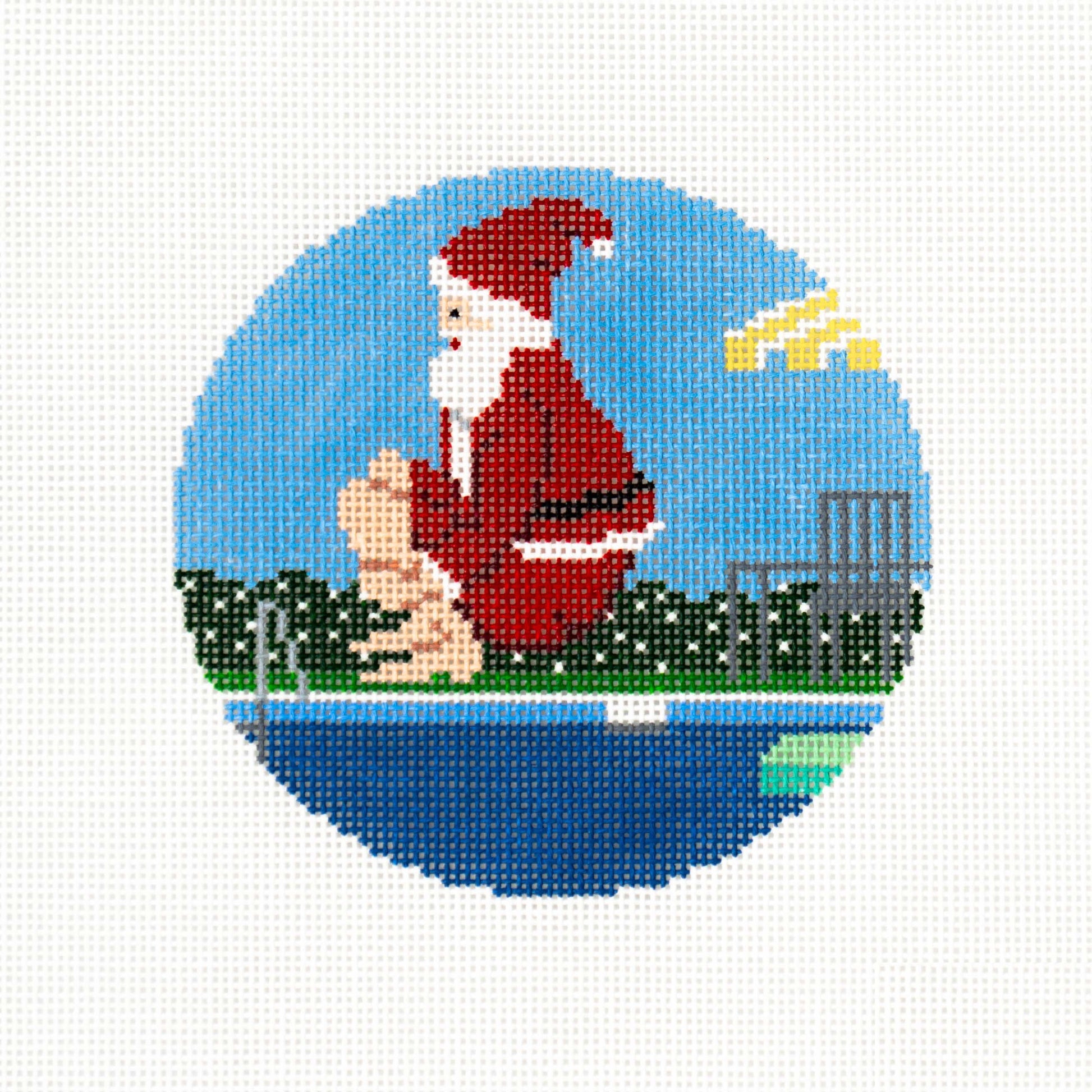 This Sporty Santa makes a big splash! Cannonball Santa is a 4” round on 18 mesh. AOK 82